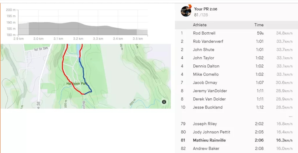 So I downloaded this Strava app on my phone to track my bike rides and it's crazy detailed. It recognizes when you hit a "segment" that a lot of other people have taken and it automatically ranks you against everyone else. I'm 81st out of 128 people lifetime over a short stretch: