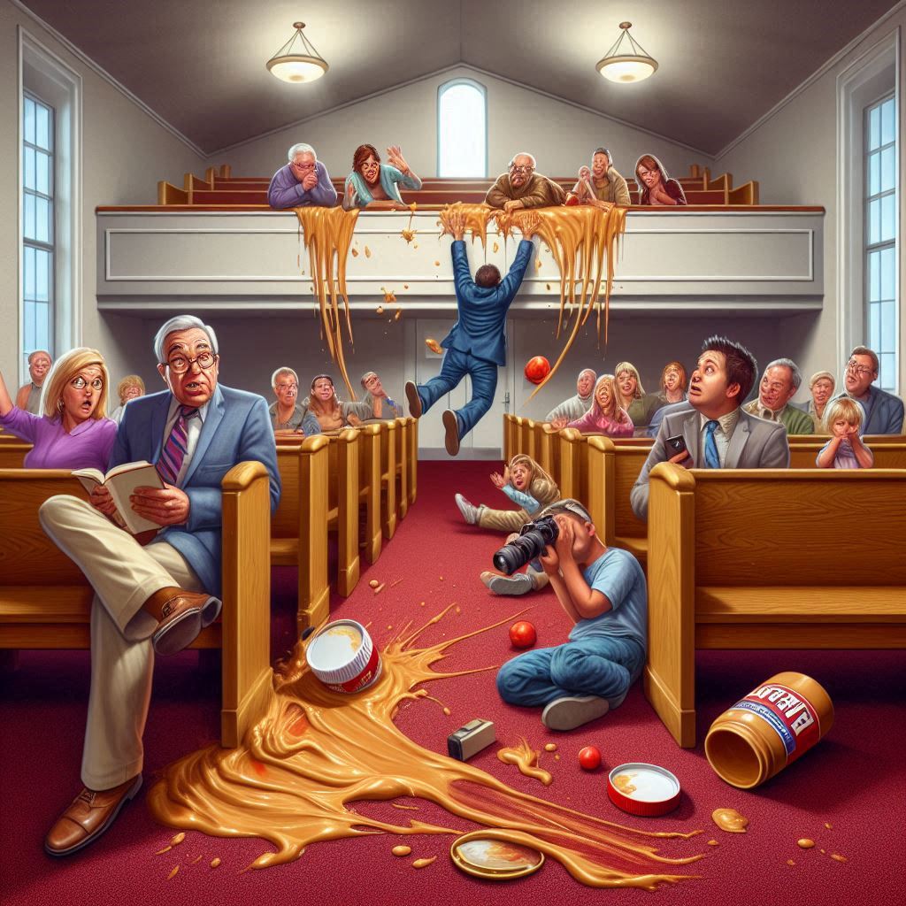 This is "Televangelists having unfortunate events with peanut butter"