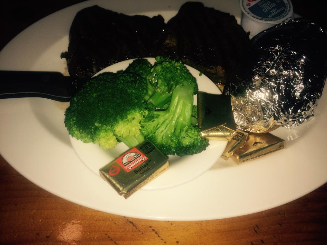 We are at a pub eating filet mignon. She's buying.